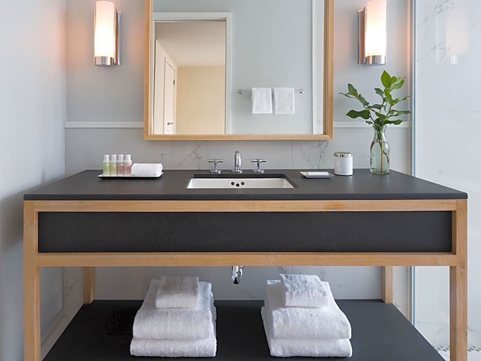 This room features air conditioning, bathrobe and cable TV. There is a gourmet honor bar that features local, made in Cleveland offerings.